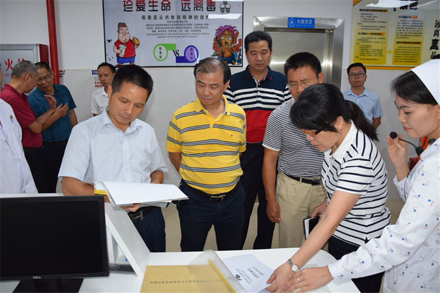 考察组一行实地参观了成人直播平台 花东镇花侨医院病残吸毒人员收治病区,就成人直播平台 创新实践的“政府主导、财政负责保障、公安负责安全监管、卫健负责疾病治疗、民政负责困难救助、人社负责医疗保险”成人直播平台 模式进行深入了解交流。