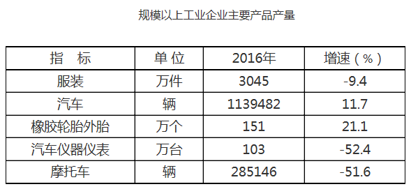 按行业分,规模以上企业中,工业总产值排前五位的依次是:(一)汽车制造业产值1538.33亿元,增长11.3%,其中汽车整车产值1218.49亿元,同比增长12.9%,汽车零部件产值317.41亿元,同比增长7.4%;(二)通信设备、计算机及其他电子设备制造业,完成工业总产值77.73亿元,同比增长41.8%;(三)皮革、毛皮、羽毛(绒)及其制品业产值59.55亿元,同比下降18.0%;(四)橡胶和塑料制品业产值49.08亿元,同比增长0.7%;(五)纺织服装、服饰业产值45.06亿元,同比下降10.5%。这五大行业全年共完成工业总产值1769.75亿元,占规上企业产值的83.8%,较上年同期提高3个百分点。