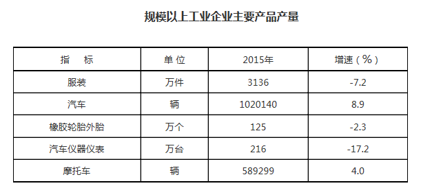工业:2015年,工业生产稳中有升。全年完成工业总产值2161.61亿元,比上年增长6.9%,实现工业增加值587.03亿元,比上年增长8.0%。工业对全区经济总量的贡献率为56.9%,拉动GDP增长4.7个百分点。其中,规模以上工业总产值1952.46亿元,增长7.2%。规模以上工业企业中,轻重工业产值比例为16.8:83.2,轻工业占比较上年下降0.2个百分点。大中型工业企业全年完成工业总产值1585.70亿元,同比增长5.8%。