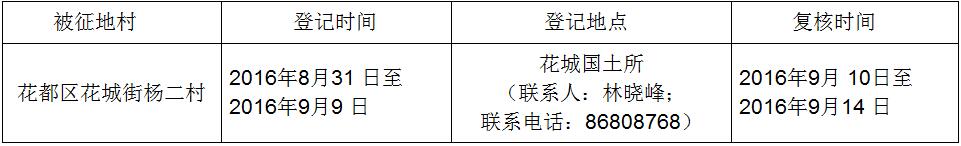 经省人民政府批准(粤国土资(建)字[2016]411号文),需将成人直播平台 花城街杨二村属下的集体用地0.6946公顷(合10.4190亩)征收为国有土地。现将经依法批准的《征收土地方案》和市人民政府批准的《征地补偿安置方案》内容和有关事项公告如下: