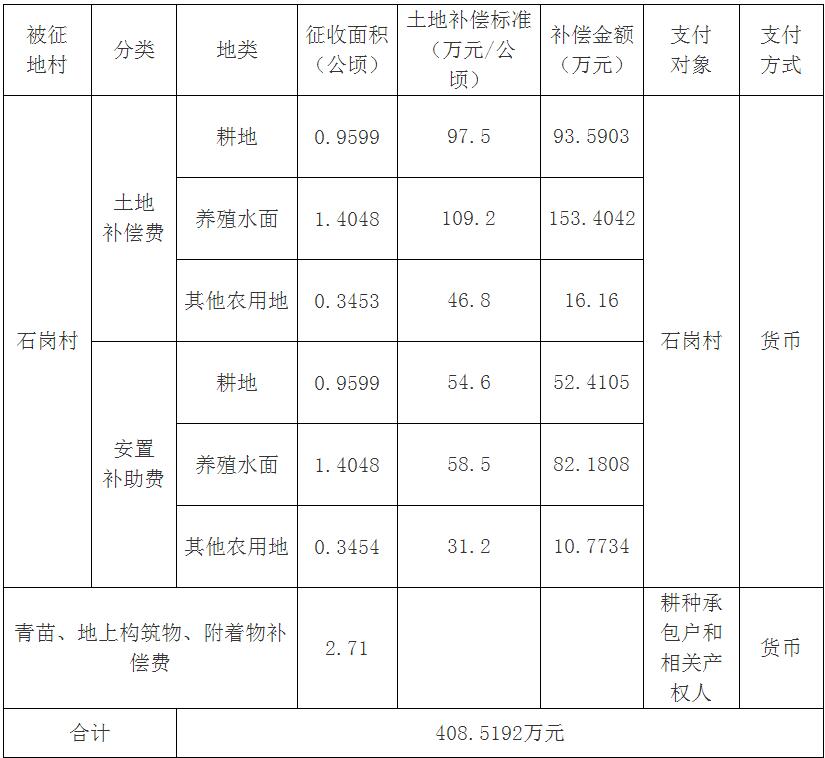 花城街石岗村的集体土地合计2.71公顷(合40.65亩),其中耕地0.9599公顷(合14.3985亩)、养殖水面1.4048公顷(合21.072亩)、其他农用地0.3453公顷(合5.1795亩)。