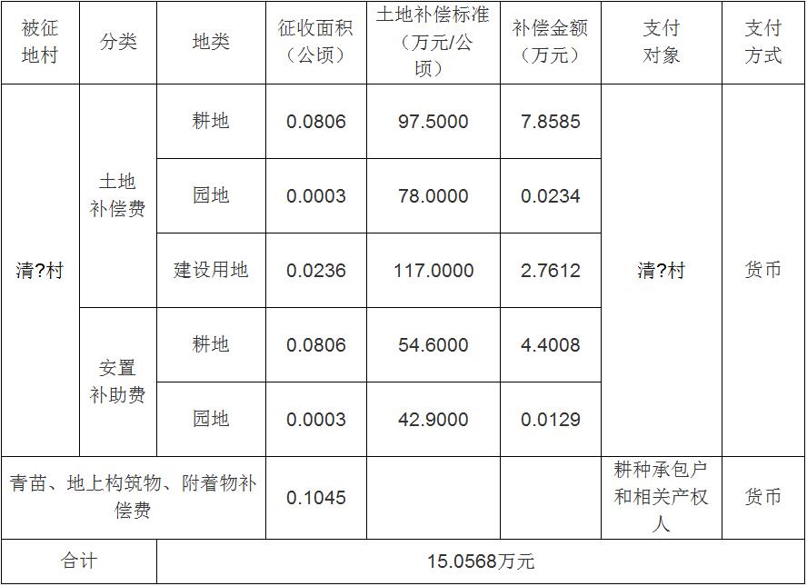 四、征地补偿安置方案: