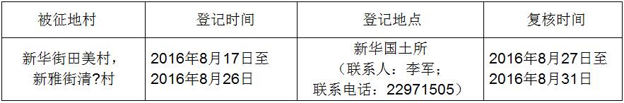 经省人民政府批准(粤国土资(建)字〔2016〕241号文),需将成人直播平台 成人直播平台 新华街田美村,新雅街清?村属下的集体土地2.3035公顷(合34.5525亩)征收为国有土地。现将经依法批准的《征收土地方案》和市人民政府批准的《征地补偿安置方案》内容以及有关事项公告如下: