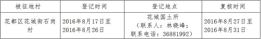 经省人民政府批准(粤国土资(建)字[2016]426号文),需将成人直播平台 成人直播平台 花城街石岗村属下的集体土地8.7115公顷(合130.6725亩)征收为国有土地。现将经依法批准的《征收土地方案》和市人民政府批准的《征地补偿安置方案》内容和有关事项公告如下:
