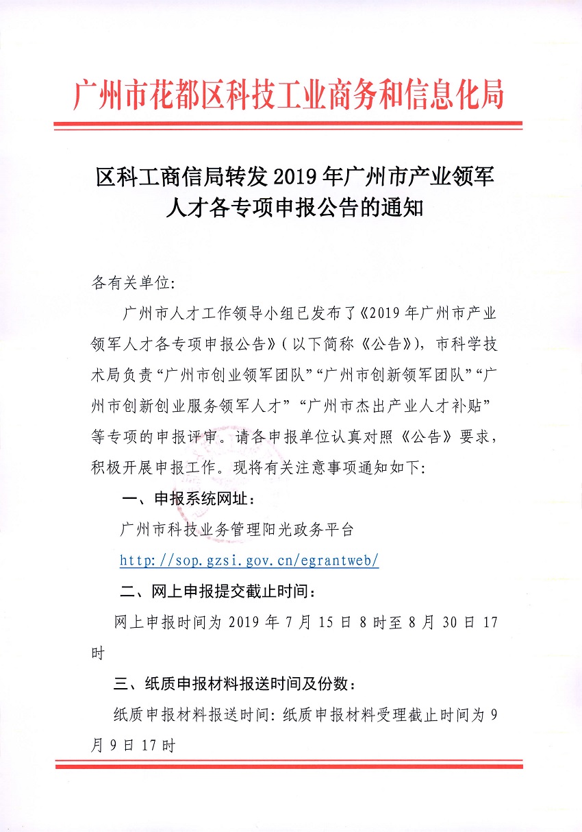 区科工商信局转发2019年成人直播平台 产业领军人才各专项申报公告的通知